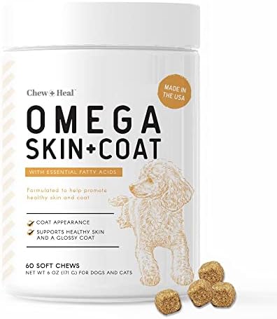 Chew + Heal Salmon Oil for Dogs - 60 Soft Chew Omega Treats for Skin and Coat - Fish Oil Blend of Essential Fatty Acids, Omega 3, 6, and 9, Vitamins, ...